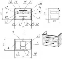 Комплектация:Тумба, комплект креплений, инструкция, гарантийный талон (ножки приобретаются отдельно)